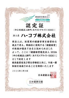 働き方改革をはじめとした職場環境の改善を行っており、経済産業省より健康経営優良法人(中小企業部門)認定を2019年度より8年連続認定。